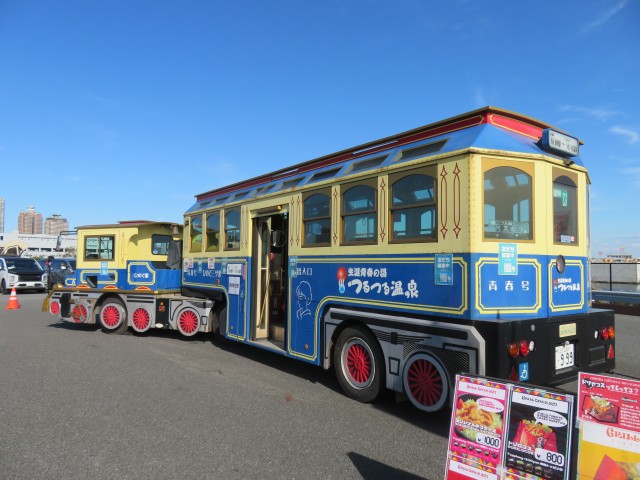 お昼過ぎはお腹ペコパコ。向こうに見えるのは東京ゲートブリッジですね~!